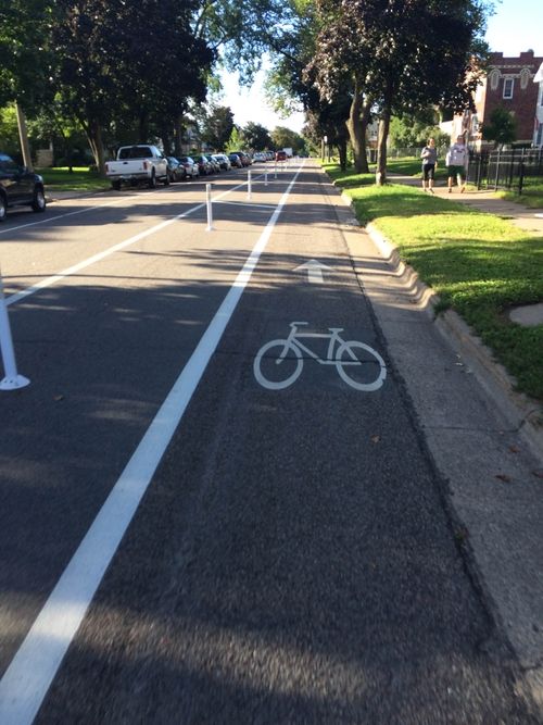 New bikeway construction is almost done in the Lyndale and Kingfield area. You might be familiar with the bike lanes on 1st Avenue and Blaisdell Avenue South that run up to downtown. Construction on the southern part of the aptly-known Whittier/Lyndale bike way started a few weeks ago along Blaisdell Avenue South. At the Lyndale Neighborhood Association last night, Ryan Gottsleben, a Public Works engineer, said the only construction left is laying the asphalt and striping the lanes. The workers have to wait until it gets a bit warmer to restripe. Gottsleben said the Blaisdell bikeway will be open in early June.