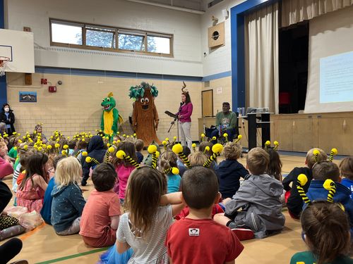 Before he started reading, Page told the children he was disappointed they weren’t outside and that he didn’t have a pair of bee antennas to wear. After he finished reading, a child brought him a pair of bee antennas and the swarm of pollinators were set to head outside to visit the new outdoor learning gardens.