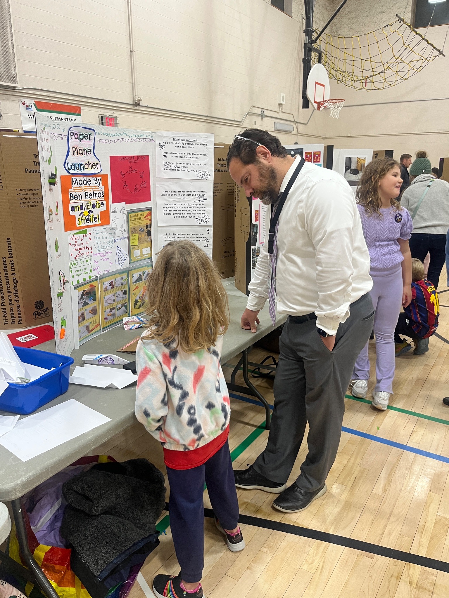 Windom School’s Principal Eric Loichle weaved his way through the rows of experiments, engaging with students on their work.